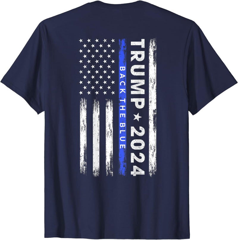 Pro Trump 2024 Back The Blue Thin Blue Line American Flag T-Shirt